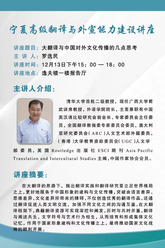 宁夏高级翻译与外宣能力建设讲座
