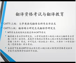 在上午的讲座中,杨老师主要介绍了CATTI考试的基本概况及要求、历年考题主题、考点及评分要点、考生常见错误、备考方法、临场技巧等。杨老师讲解了长、难句和专有名词的翻译,以及多义词和标点符合的使用以及避免中式英语的出现。同时,强调翻译要忠于原文,不得多译、漏译,考生的“过度发挥”反而会导致其在考试中没有足够的时间答完其他题目。除此之外,他还总结了历年来的考题主题,方便考生有针对性的进行备考、熟悉并掌握相关词汇及短语。